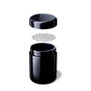 Das Set umfasst neben dem Glas einen schwarzen Schraubdeckel aus SAN-Kunststoff mit glänzender Oberfläche und integrierter PHAN-Dichtung, sowie eine manipulationssichere Versiegelung für trockene Produkte. Die Versiegelung bietet zusätzliche Sicherheit beim Erstgebrauch und ist einfach anzubringen – sie haftet durch Druckeinwirkung auf dem Glasrand.
